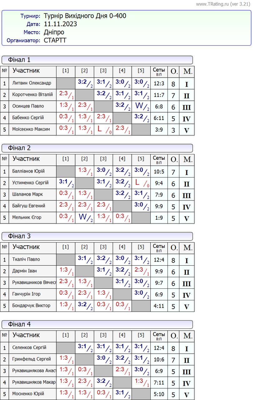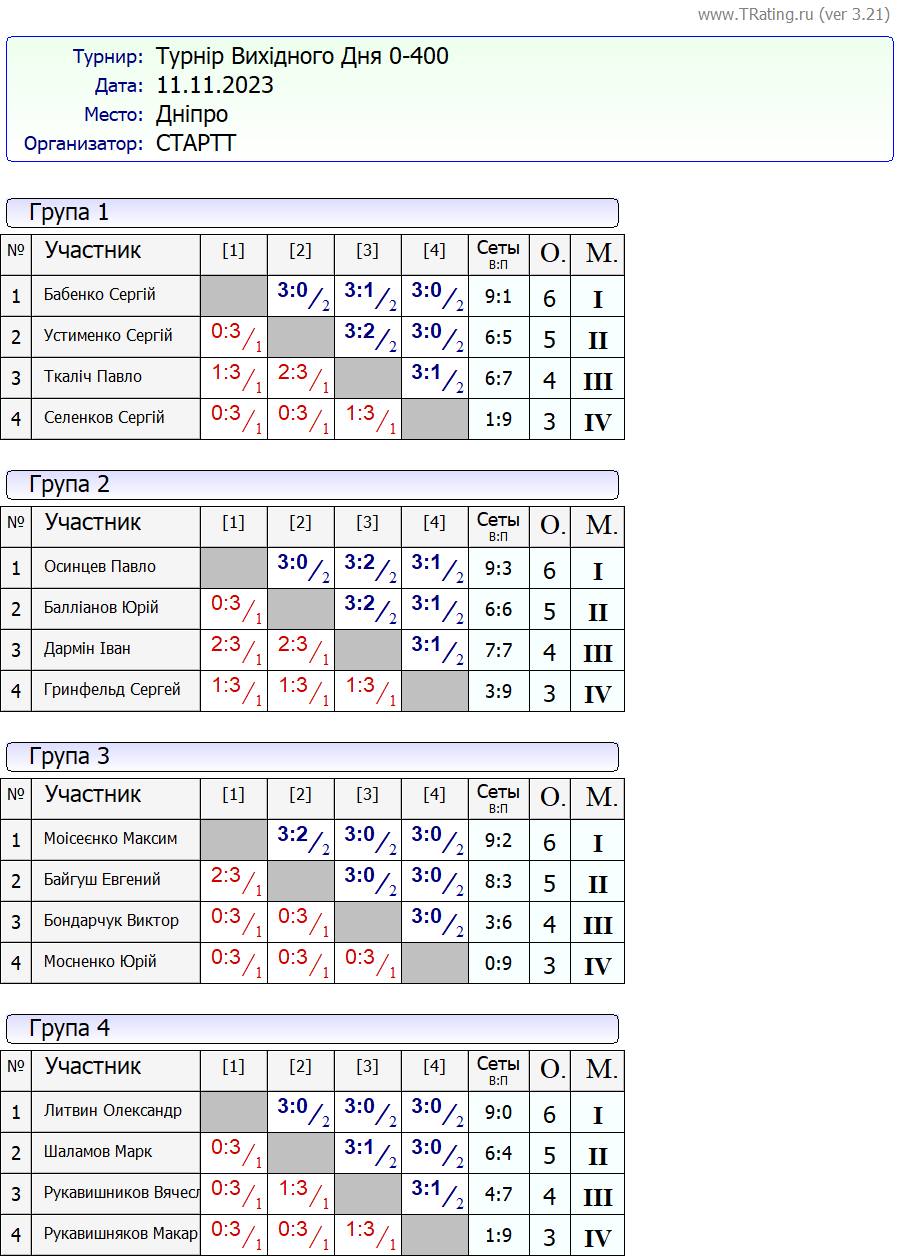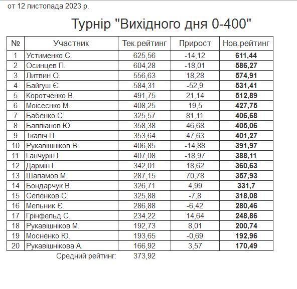 Результати турніру “Вихідного дня 0-400” за 11.11.2023