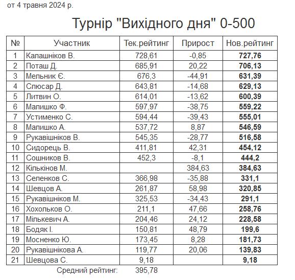 Результати турніру “Вихідного дня 0-500” за 04.05.2024