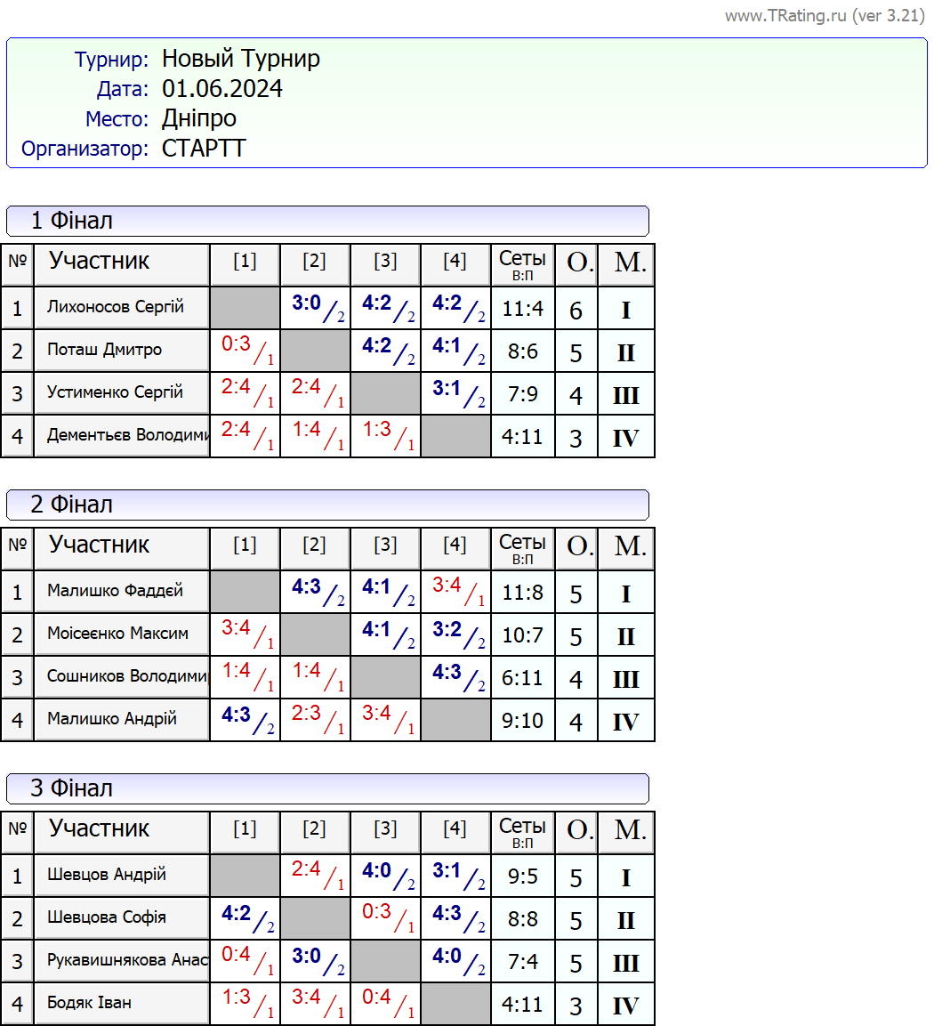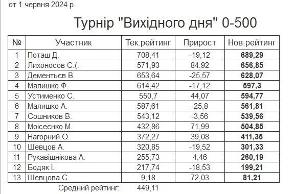 Результати турніру “Вихідного дня 0-500” за 1.06.2024