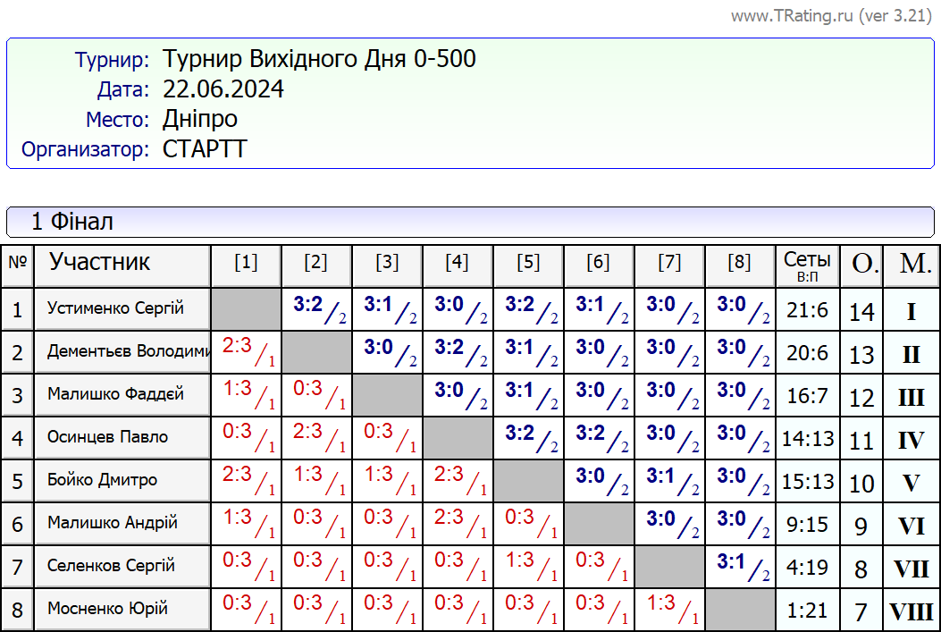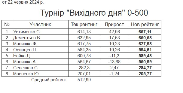 Результати турніру “Вихідного дня 0-500” за 22.06.2024