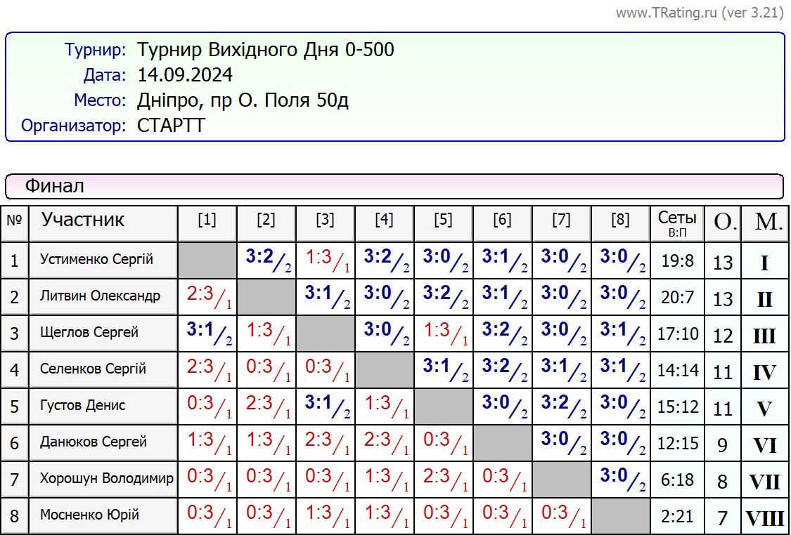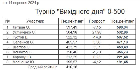 Результати турніру “Вихідного дня 0-500” за 14.09.2024