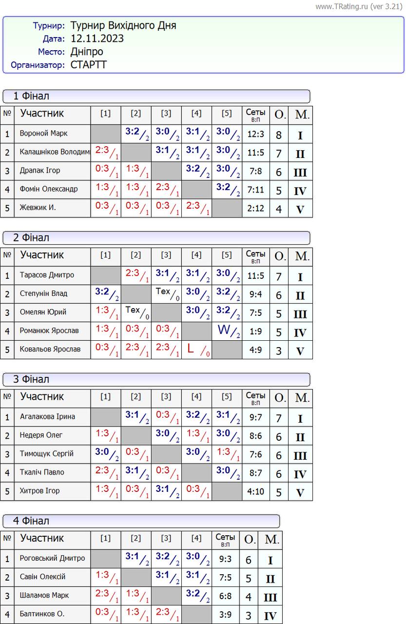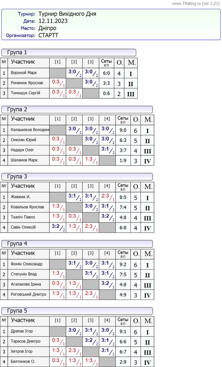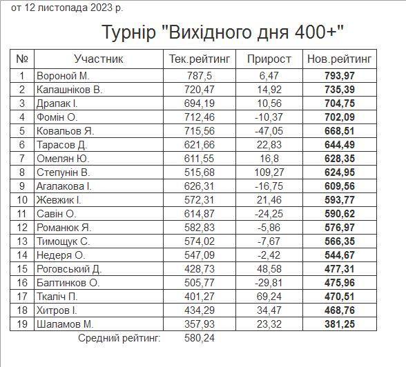 Результати турніру “Вихідного дня 400+” за 12.11.2023