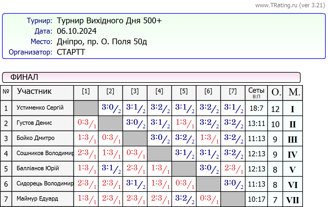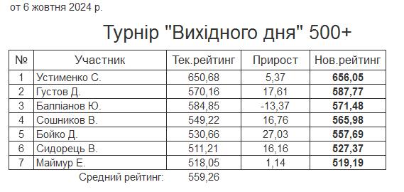 Результати турніру “Вихідного дня 500+” за 06.10.2024