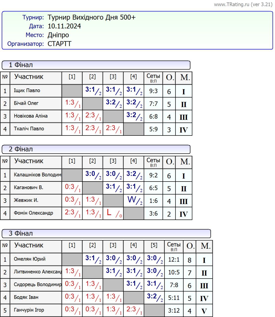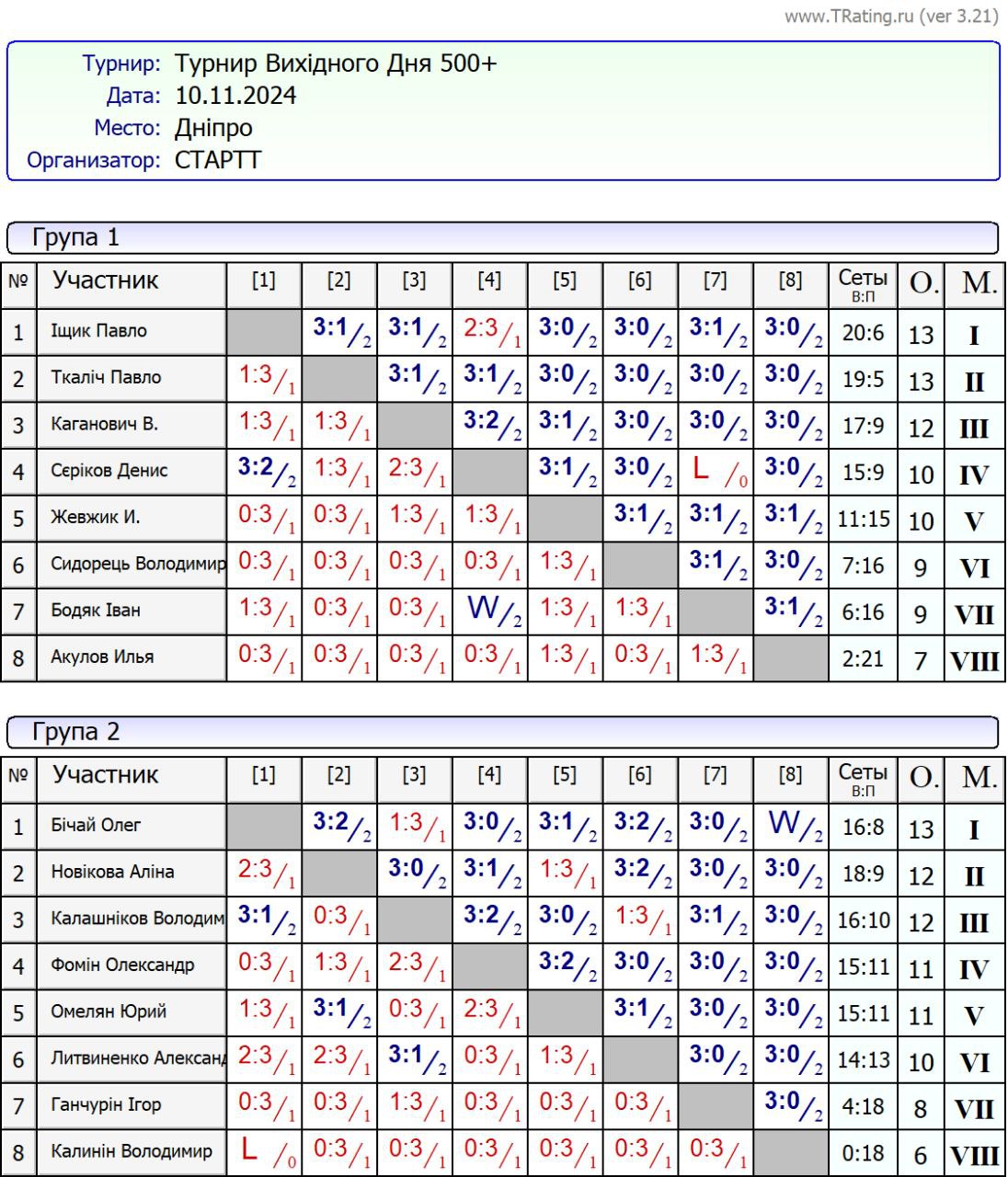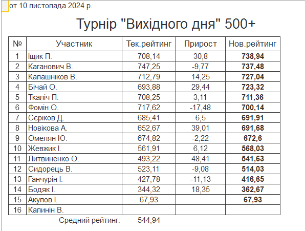 Результати турніру “Вихідного дня 500+” за 10.11.2024