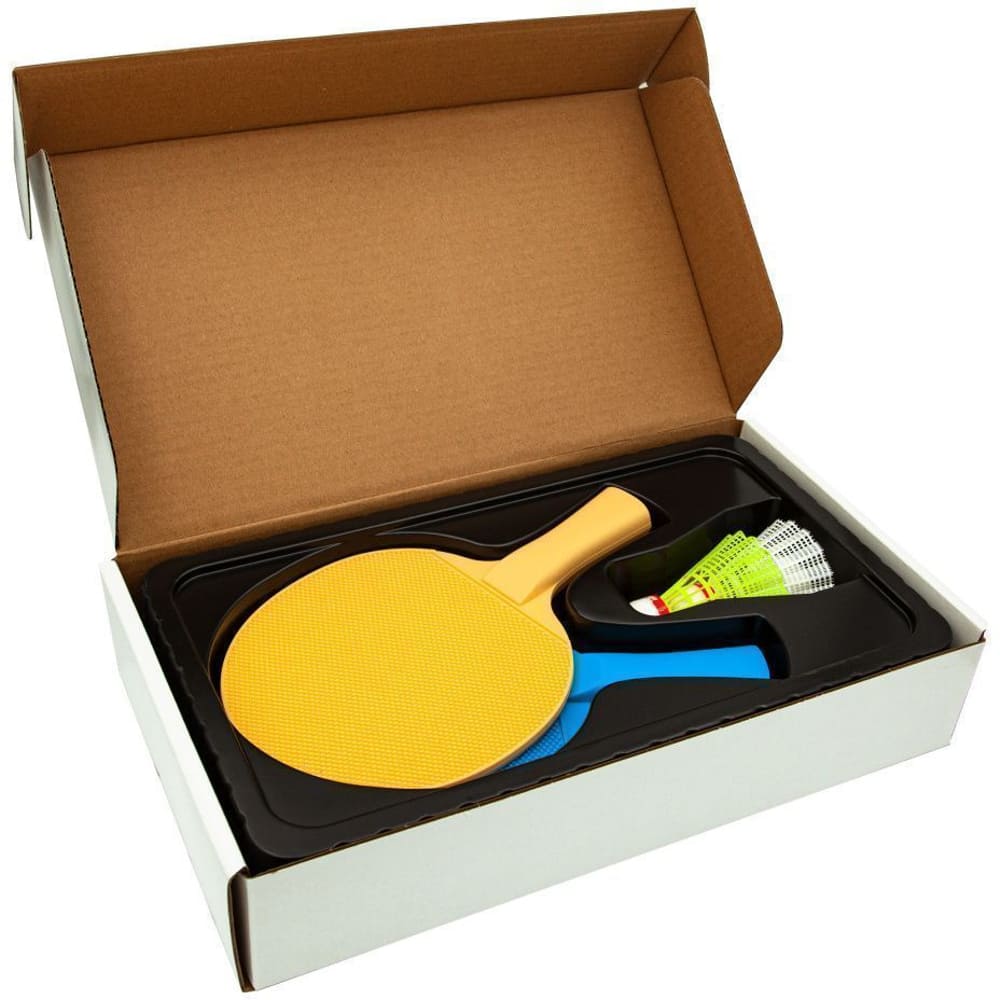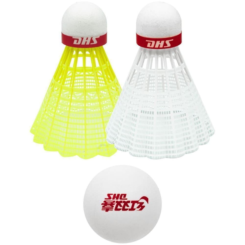 Набір ракеток DHS T-B-2020 – унікальна новинка для спорту та відпочинку від відомого бренду DHS! Набір цікавий насамперед тим, що поєднує гру в настільний теніс і бадмінтон. Якщо поблизу немає столу для настільного тенісу або майданчика для бадмінтону, то Ваш відпочинок буде все одно вдалим із цим набором, оскільки один вид дозвілля Ви зможете замінити іншим без найменших зусиль як на відкритому повітрі, так і в приміщенні. Набір складається з: => двох спеціальних ракеток, які дуже схожі на ракетки для тенісу, але водночас здатні грати воланами; => двох воланів, у яких головка із спеціального спіненого матеріалу, а оперення із нейлону; => один м’яч для настільного тенісу з логотипом бренду. T-B-2020 практичний та універсальний завдяки тому, що ракетки легко відмиваються від пилу та будь-яких забруднень звичайною водою, а волани світяться у темряві. Набір ракеток DHS T-B-2020 стане чудовим вибором для цікавого та активного проведення дозвілля та відпочинку на природі!