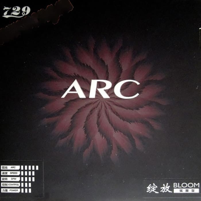 Накладка 729 Bloom Arc розроблена для контрольної атаки підвісними топспінами. Крім гри обертаннями, накладка також забезпечує контрольну плоску гру.