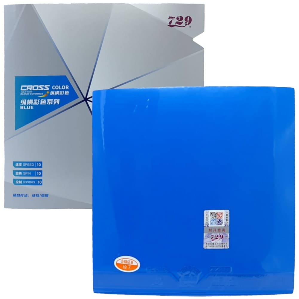 729 Cross General (blue rubber) – це та ж сама накладка 729 Cross General, тільки з топшитом синього кольору. Універсальна накладка стилю allround. Відмінне співвідношення ціна/якість. Підрізування, накати та контрольна гра є сильними сторонами та відмінною рисою даної накладки. Добре себе показала як на дерев’яних, так і на карбонових основах.