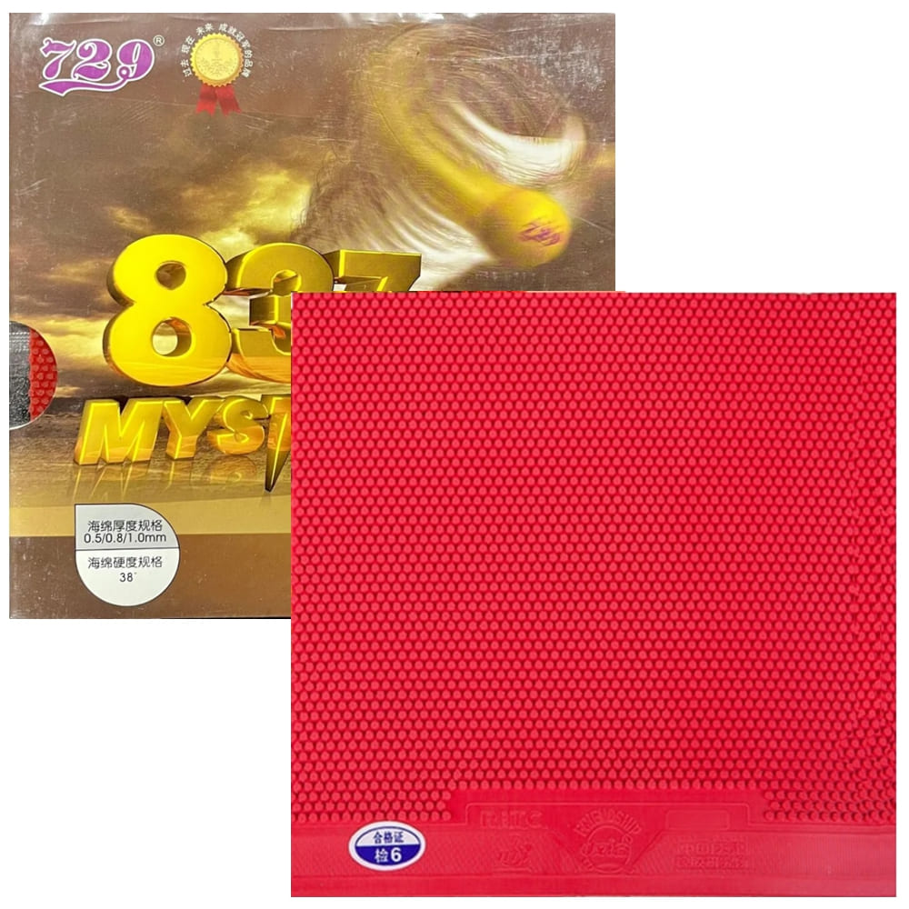Накладка 729 Mystery III 837 – унікальна поверхня довгих шипів у поєднанні з тонкою оболонкою роблять цю накладку ідеальною для руйнівної гри та атаки у ближній зоні. Ця накладка має ряд переваг, а саме: • довгі шпильки для швидкої атаки; • висока еластичність, сильніше тертя та обертання сприяють глибшому зануренню м’яча в накладку; • траєкторія м’яча на блоці коротка, полога і дуже складна для суперника; • при атаці по нижньому обертанню та плоским завищеним м’ячам видають пологий швидкий м’яч зі складною траєкторією та незрозумілим обертанням.; • ефективна у ближній зоні. Має чудове співвідношення ціни та якості.