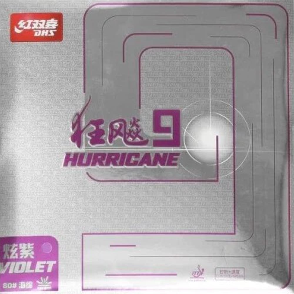 Накладка DHS Hurricane 9 – це унікальна накладка серед інших не тільки у бренду DHS, але і серед інших відомих виробників. Особливість полягає в нестандартному колірному рішенні топшиту з відповідною кожному кольору своєю губкою. ?Накладка DHS Hurricane 9 Blue має класичну синю губку з кодом #22. Ця накладка пропонує більше потужності та швидкості ударів, не втрачаючи при цьому показників у контролі та обертанні. Твердість у Hurricane 9 Blue 38 та 39 градусів з товщиною губки 2,15 та 2,2 мм відповідно. ?Накладка DHS Hurricane 9 Pink має таку ж помаранчеву губку з кодом #20, як і накладка Hurricane Neo 3. Ця накладка чудово підійде для атакуючого гравця. Версія Pink пропонує обертання зі стабільною швидкістю та високою дугою, потужні швидкі атаки. Прекрасно себе покаже біля столу та на середній дистанції. Твердість у Hurricane 9 Pink 38 та 39 градусів з товщиною губки 2,15 та 2,2 мм відповідно. ?Накладка DHS Hurricane 9 Violet має таку ж червону м’яку еластичну губку з кодом #80, як і накладка Hurricane 8-80, що забезпечує великий відскок, високі швидкісні показники та потужні удари в безперервній атаці. Особливістю цієї накладки є губка з більшими порами, а також топшит, що швидко приймає початкову форму при ударі м’яча, що ефективно в швидкій короткій грі. Твердість у Hurricane 9 Violet 37 та 38 градусів з товщиною губки 2,15 мм.