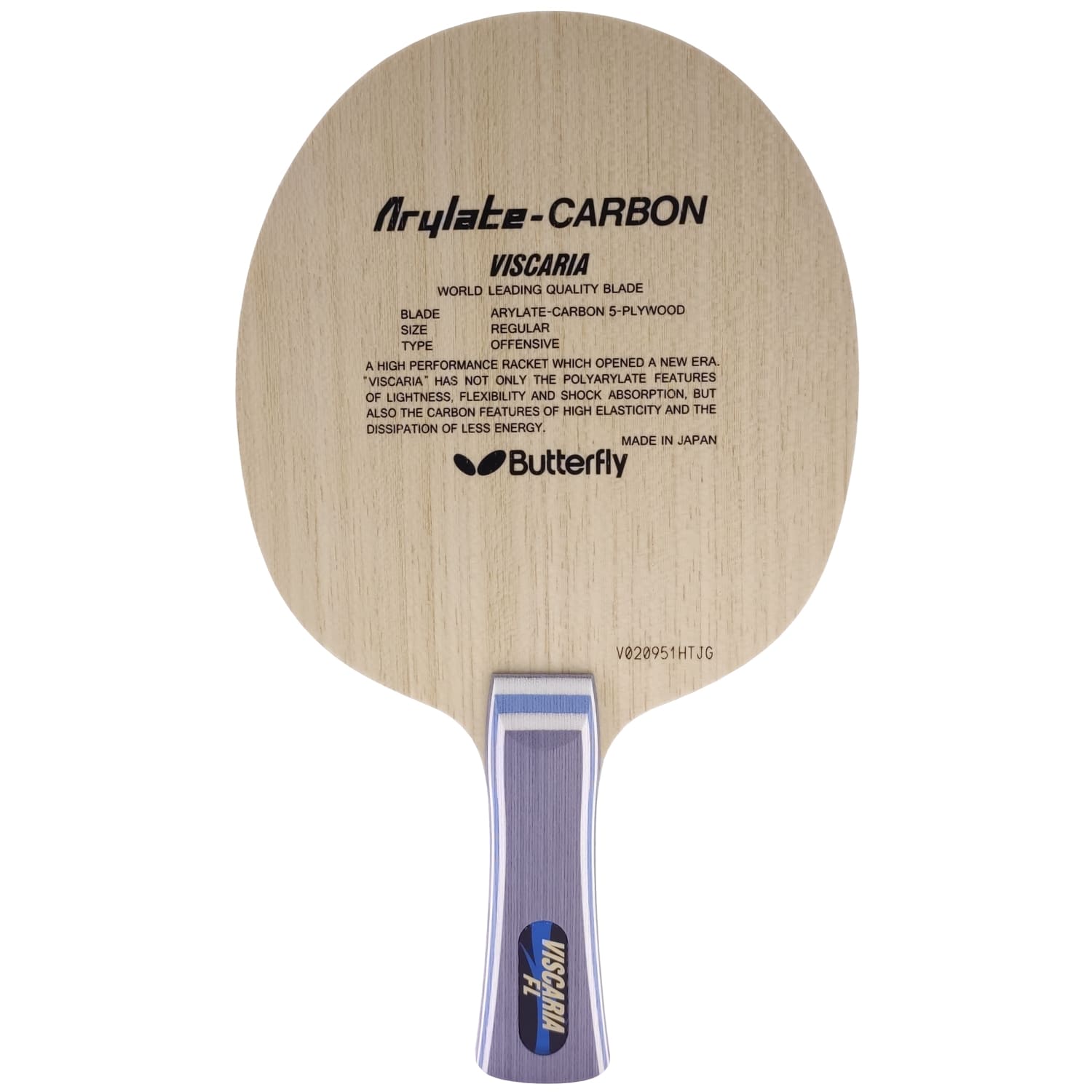Основа для ракетки Butterfly Viscaria – перша основа компанії Butterfly, в якій використовували синтетичні волокна arilate (відсутність вібрації, гнучкість) та carbon (велика потужність, еластичність). Завдяки такому поєднанню Viscaria ідеально підходить для атакуючої та контратакуючої гри біля столу та на середній дистанції. Спеціально розроблено для різноманітних, а також потужних атак із основним акцентом на обертання. Має збільшену пляму стабільного відскоку; має більш м’яке відчуття м’яча, ніж у основ зі звичайним карбоном; досить пружна та гнучка. У цій основі добре збалансовані швидкість та контроль, за що вона цінується серед гравців у настільний теніс. Важить 90 грам, товщина – 5,8 мм, складається із семи шарів, п’ять із яких – це дерево, а два – арилат карбон (7 (5+2ALC)). Саме цією основою грав триразовий олімпійський чемпіон Чжан Цзіке (Zhang Jike).