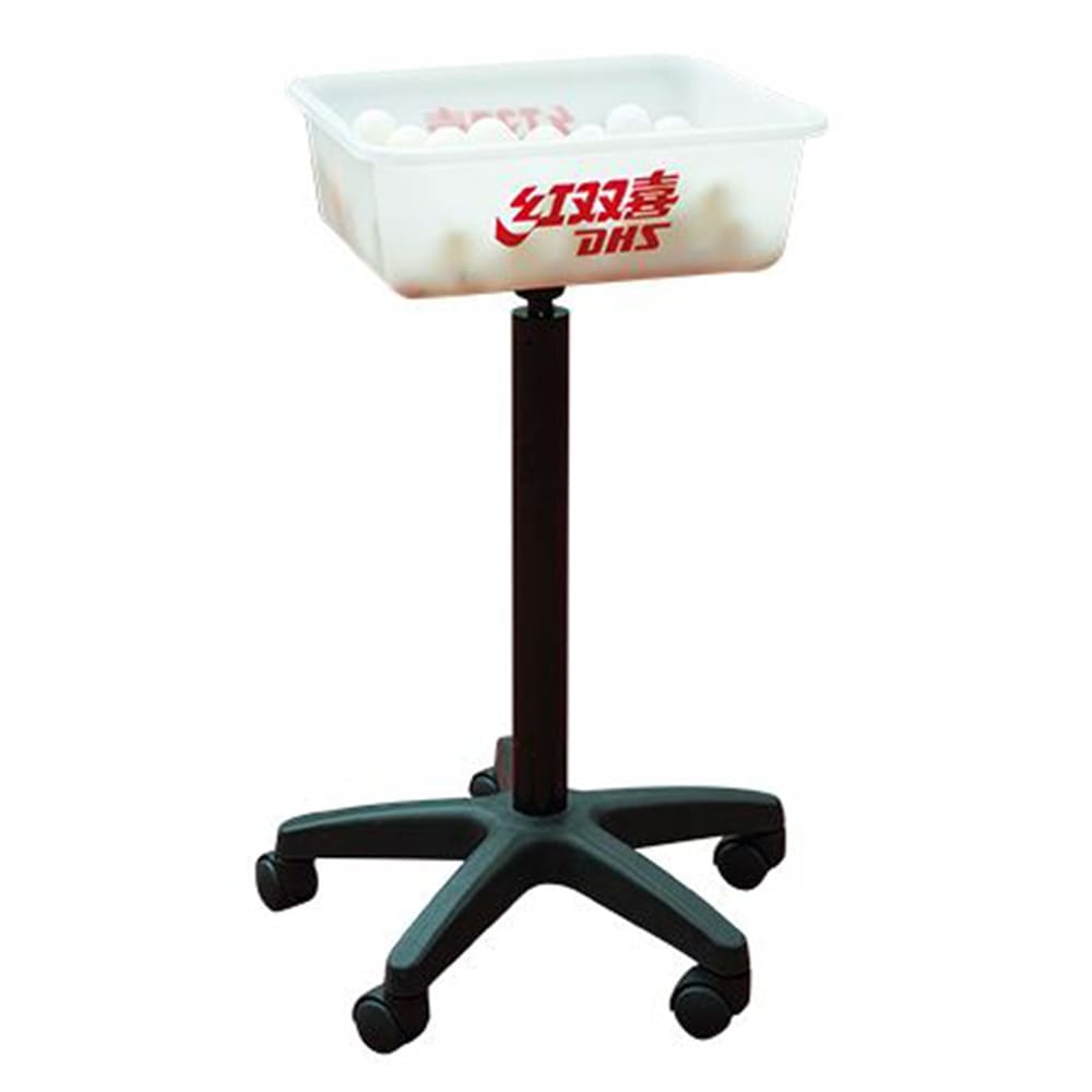 Підставка для м’ячів DHS BP02 – чудовий помічник під час і після тренування. Оснащена зручною досить місткою чашею з міцного пластику білого кольору з фірмовим логотипом Double Happiness. Для зручності переміщення обладнана колесами. Висота підставки 760 мм, вага в упаковці 4 кг.