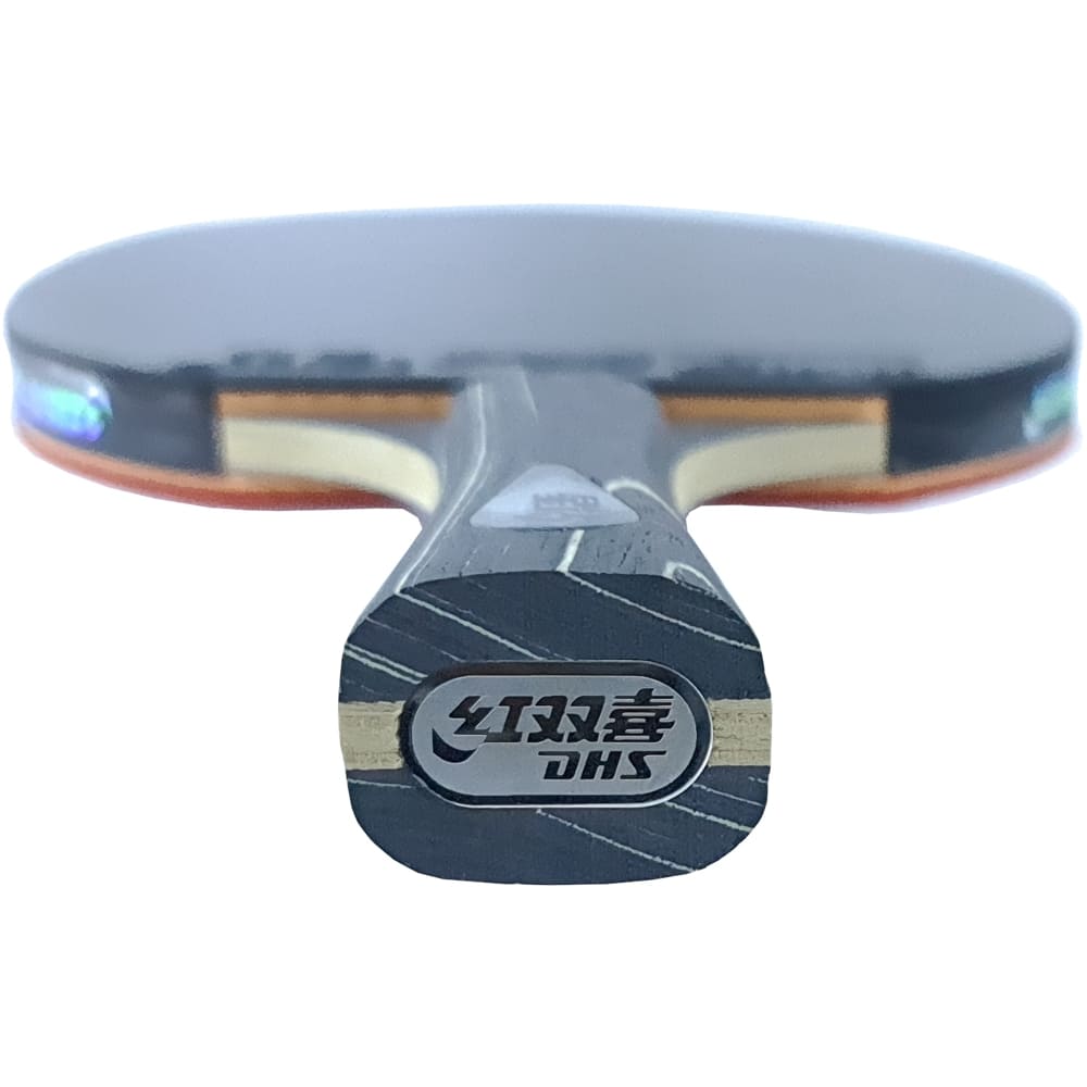 Ракетка DHS Star-Diamond Black D02 – новинка від відомого бренду DHS. Оснащена семишаровою основою з чистого дерева та двома класичними китайськими липучками. Розроблена спеціально для нових пластикових м’ячів 40+. Вдала комбінація швидкості та обертання, щоб швидше та легше показувати міць та потужність як у захисті, так і в атакуючому стилі. Стане чудовим вибором для універсальних гравців. Особливістю цієї ракетки є глибокий чорний колір як рукоятки (FL) без найменших задирок, так і шпону основи, що допомагає збільшити силу ракетки на вашу користь.