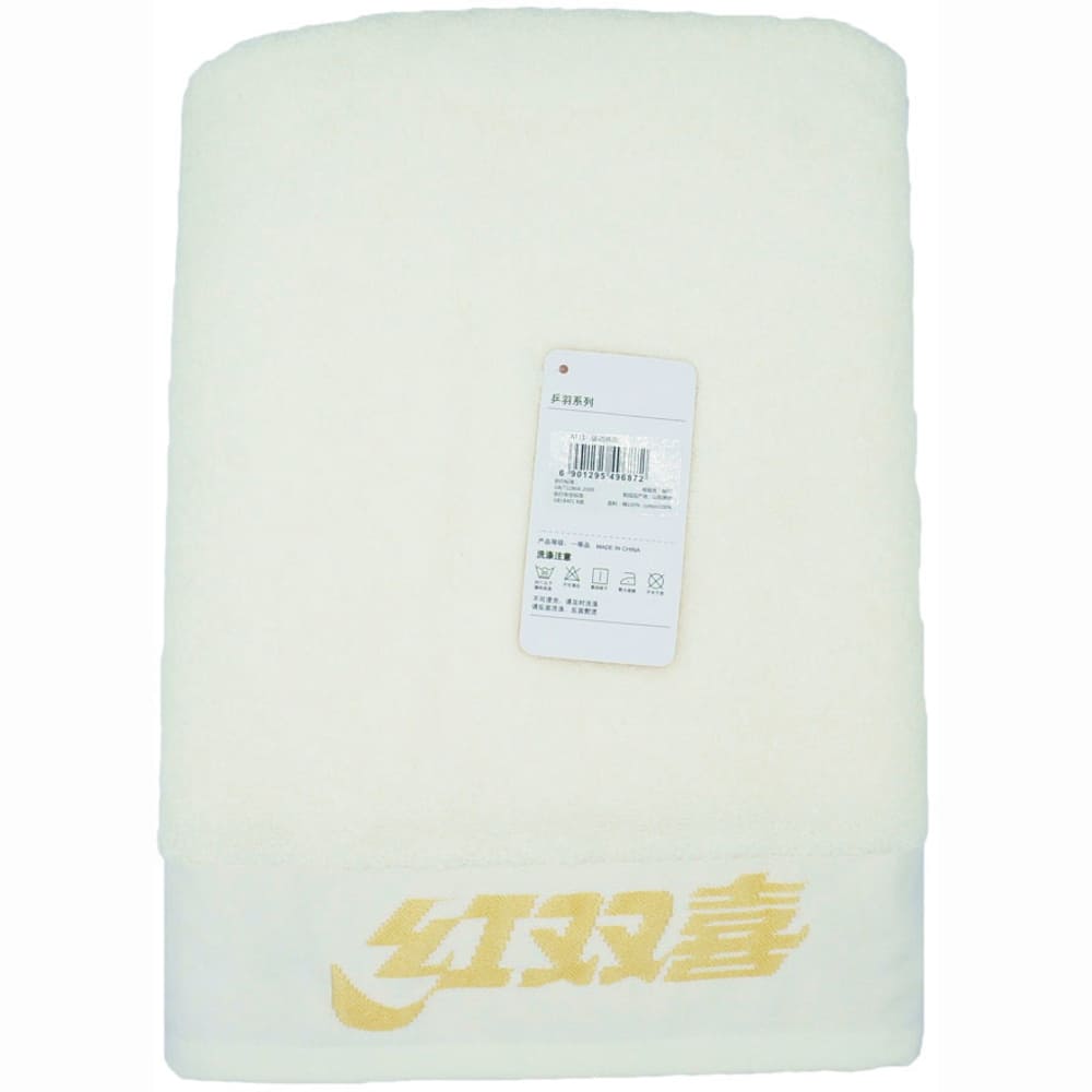 Рушник DHS AT-11 виготовлений з натуральної бавовняної тканини бежевого кольору з золотою вишивкою фірмогового логотипу Double Happiness. Тканина приємна до тіла, м’яка та не викликає подразнення при контакті з тілом. Добре поглинає вологу. Користується популярністю у світових зірок настільного тенісу. Розмір рушника 70 см х 140 см.